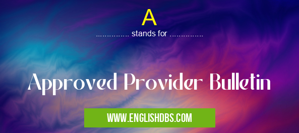 A mostly used in an acronym Unclassified in Category Miscellaneous that means Approved Provider Bulletin