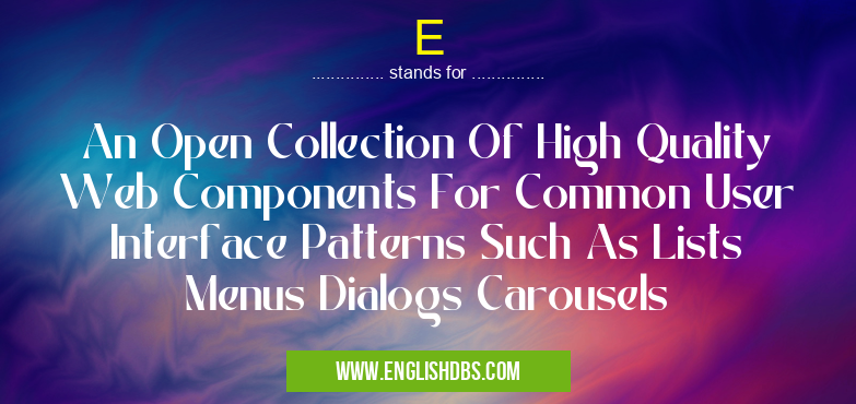 E mostly used in an acronym Unclassified in Category Miscellaneous that means An Open Collection Of High Quality Web Components For Common User Interface Patterns Such As Lists Menus Dialogs Carousels
