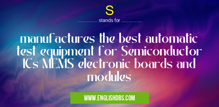 S mostly used in an acronym Electronics in Category Academic & Science that means manufactures the best automatic test equipment for Semiconductor ICs MEMS electronic boards and modules