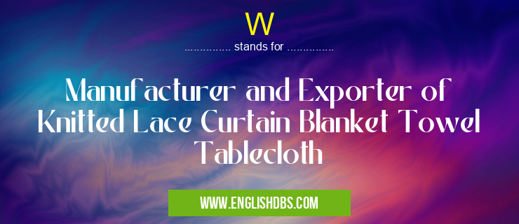 W mostly used in an acronym Unclassified in Category Miscellaneous that means Manufacturer and Exporter of Knitted Lace Curtain Blanket Towel Tablecloth