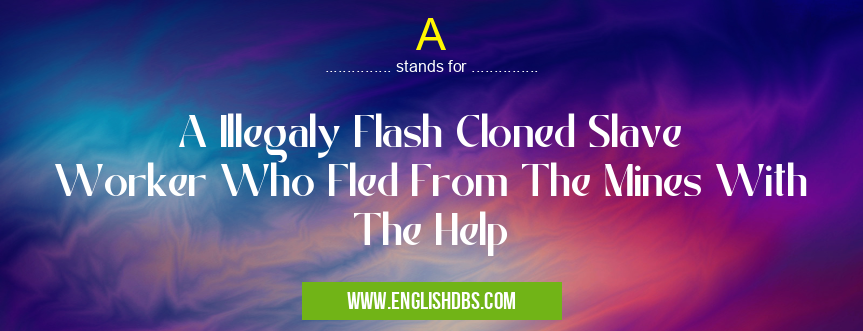 A mostly used in an acronym Unclassified in Category Miscellaneous that means A Illegaly Flash Cloned Slave Worker Who Fled From The Mines With The Help