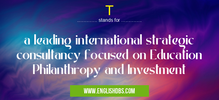 T mostly used in an acronym Investments in Category Business that means a leading international strategic consultancy focused on Education Philanthropy and Investment