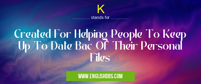 K mostly used in an acronym Unclassified in Category Miscellaneous that means Created For Helping People To Keep Up To Date Bac Of Their Personal Files