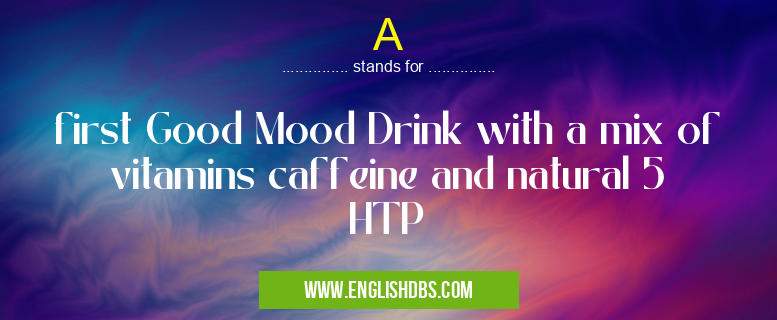 A mostly used in an acronym Unclassified in Category Miscellaneous that means first Good Mood Drink with a mix of vitamins caffeine and natural 5 HTP