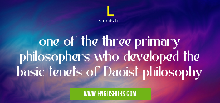 L mostly used in an acronym Unclassified in Category Miscellaneous that means one of the three primary philosophers who developed the basic tenets of Daoist philosophy