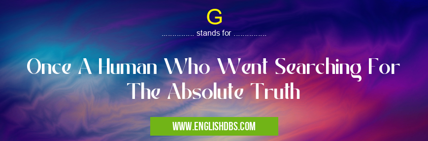 G mostly used in an acronym Unclassified in Category Miscellaneous that means Once A Human Who Went Searching For The Absolute Truth