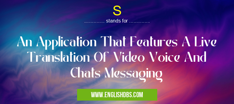 S mostly used in an acronym Unclassified in Category Miscellaneous that means An Application That Features A Live Translation Of Video Voice And Chats Messaging