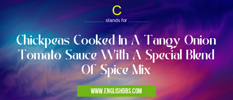 C mostly used in an acronym Unclassified in Category Miscellaneous that means Chickpeas Cooked In A Tangy Onion Tomato Sauce With A Special Blend Of Spice Mix