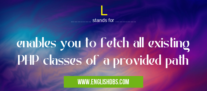 L mostly used in an acronym Unclassified in Category Miscellaneous that means enables you to fetch all existing PHP classes of a provided path
