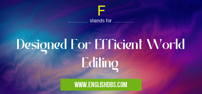 F mostly used in an acronym Unclassified in Category Miscellaneous that means Designed For Efficient World Editing