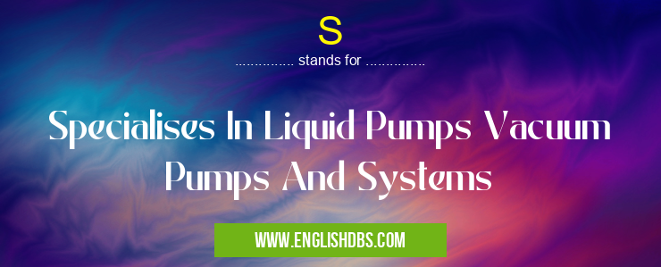 S mostly used in an acronym Unclassified in Category Miscellaneous that means Specialises In Liquid Pumps Vacuum Pumps And Systems
