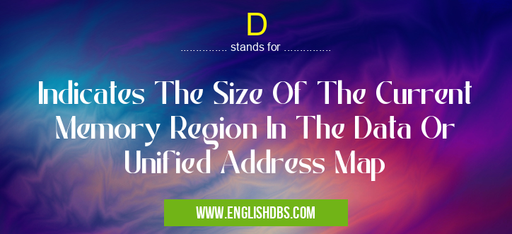 D mostly used in an acronym Unclassified in Category Miscellaneous that means Indicates The Size Of The Current Memory Region In The Data Or Unified Address Map