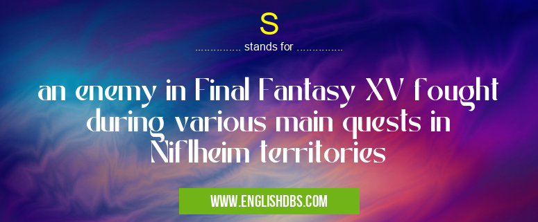 S mostly used in an acronym Unclassified in Category Miscellaneous that means an enemy in Final Fantasy XV fought during various main quests in Niflheim territories