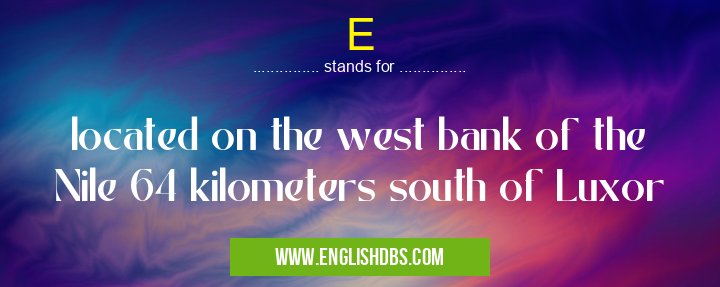 E mostly used in an acronym Banking in Category Business that means located on the west bank of the Nile 64 kilometers south of Luxor
