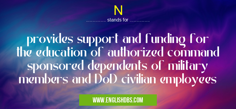N mostly used in an acronym Military in Category Governmental that means provides support and funding for the education of authorized command sponsored dependents of military members and DoD civilian employees