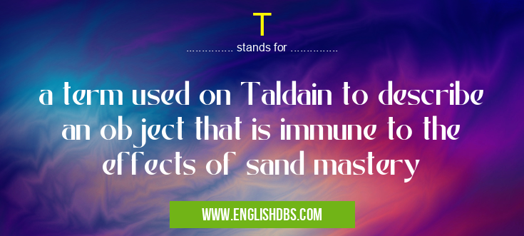 T mostly used in an acronym Unclassified in Category Miscellaneous that means a term used on Taldain to describe an object that is immune to the effects of sand mastery