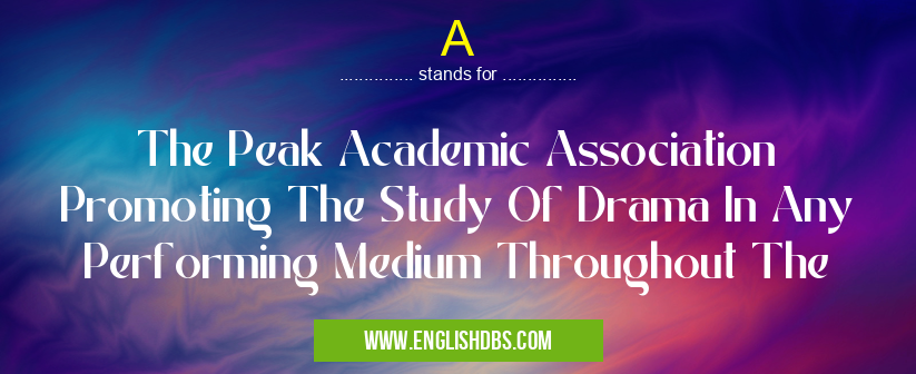 A mostly used in an acronym Academic & Science in Category Academic & Science that means The Peak Academic Association Promoting The Study Of Drama In Any Performing Medium Throughout The