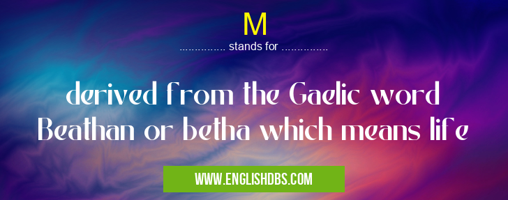 M mostly used in an acronym Unclassified in Category Miscellaneous that means derived from the Gaelic word Beathan or betha which means life