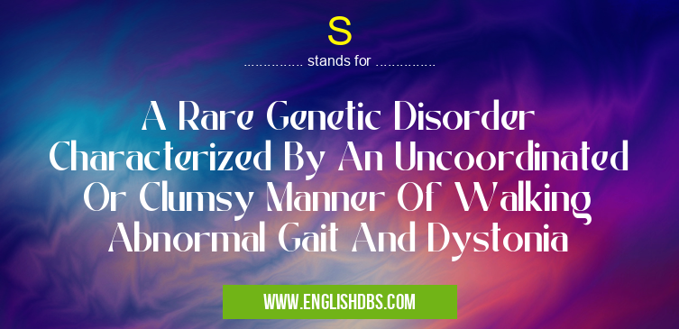 S mostly used in an acronym Human Genome in Category Medical that means A Rare Genetic Disorder Characterized By An Uncoordinated Or Clumsy Manner Of Walking Abnormal Gait And Dystonia