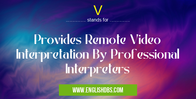 V mostly used in an acronym Unclassified in Category Miscellaneous that means Provides Remote Video Interpretation By Professional Interpreters