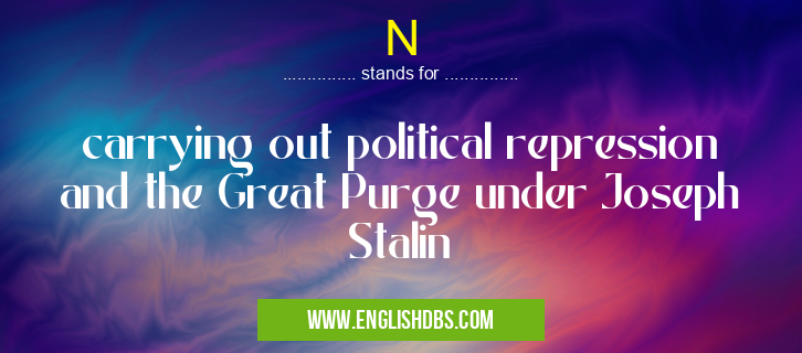 N mostly used in an acronym Politics in Category Governmental that means carrying out political repression and the Great Purge under Joseph Stalin