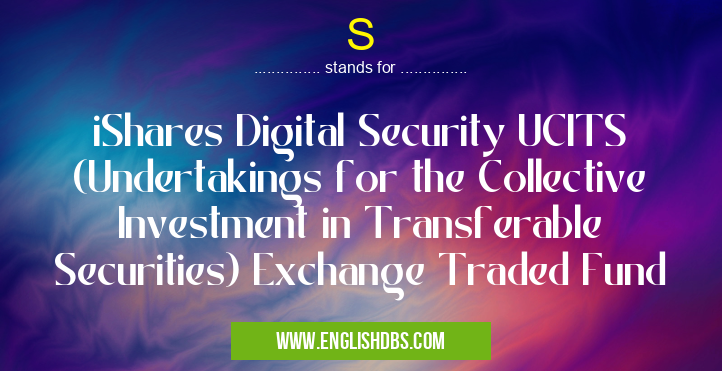 S mostly used in an acronym NASDAQ Symbols in Category Business that means iShares Digital Security UCITS (Undertakings for the Collective Investment in Transferable Securities) Exchange Traded Fund