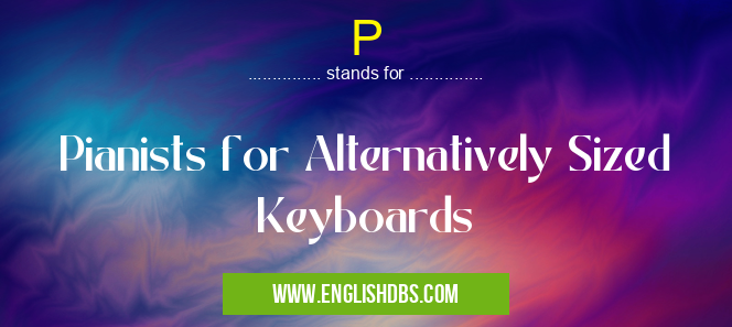 P mostly used in an acronym Unclassified in Category Miscellaneous that means Pianists for Alternatively Sized Keyboards