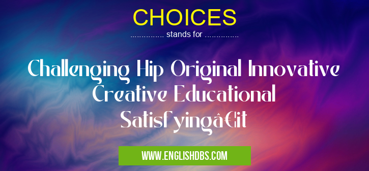 CHOICES mostly used in an acronym Educational in Category Community that means Challenging Hip Original Innovative Creative Educational Satisfying…it