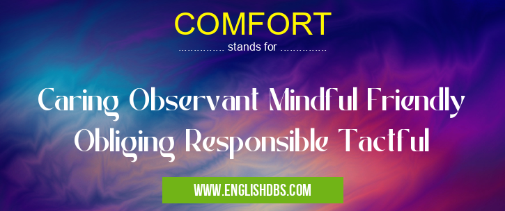 COMFORT mostly used in an acronym Hospitals in Category Medical that means Caring Observant Mindful Friendly Obliging Responsible Tactful