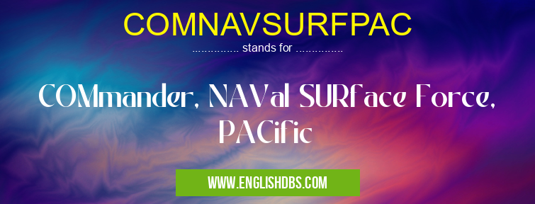 COMNAVSURFPAC mostly used in an acronym Military in Category Governmental that means COMmander, NAVal SURface Force, PACific