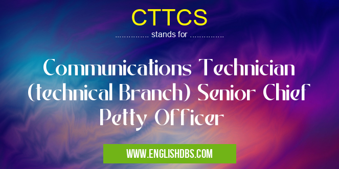 CTTCS mostly used in an acronym Navy in Category Governmental that means Communications Technician (technical Branch) Senior Chief Petty Officer