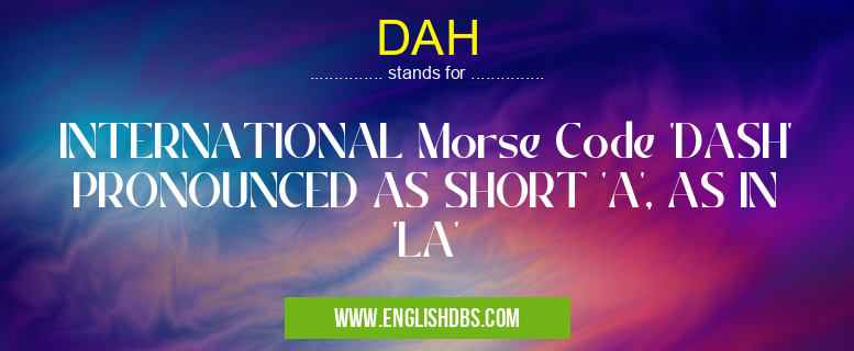 DAH mostly used in an acronym Amateur Radio in Category Academic & Science that means INTERNATIONAL Morse Code 'DASH' PRONOUNCED AS SHORT 'A', AS IN 'LA'