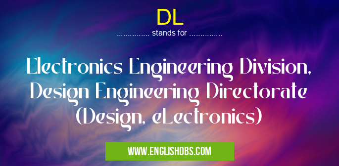 DL mostly used in an acronym NASA in Category Governmental that means Electronics Engineering Division, Design Engineering Directorate (Design, eLectronics)
