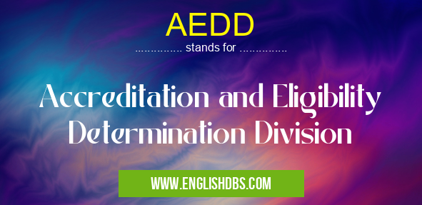 AEDD mostly used in an acronym Universities in Category Academic & Science that means Accreditation and Eligibility Determination Division