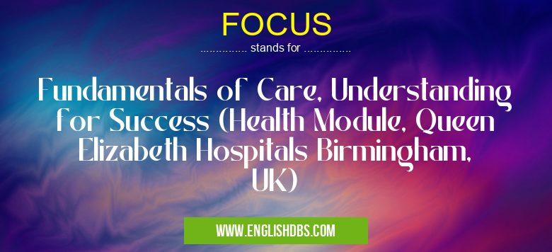FOCUS mostly used in an acronym British Medicine in Category Medical that means Fundamentals of Care, Understanding for Success (Health Module, Queen Elizabeth Hospitals Birmingham, UK)