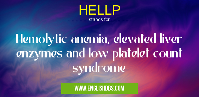 HELLP mostly used in an acronym Syndromes in Category Medical that means Hemolytic anemia, elevated liver enzymes and low platelet count syndrome