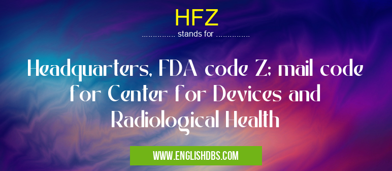 HFZ mostly used in an acronym FDA in Category Governmental that means Headquarters, FDA code Z; mail code for Center for Devices and Radiological Health