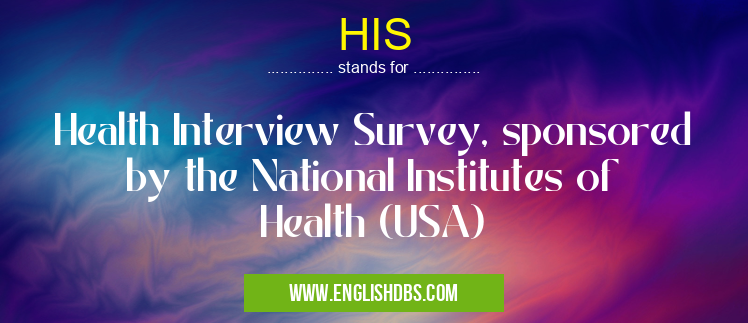 HIS mostly used in an acronym British Medicine in Category Medical that means Health Interview Survey, sponsored by the National Institutes of Health (USA)