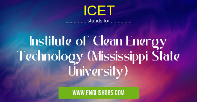 ICET mostly used in an acronym Universities in Category Academic & Science that means Institute of Clean Energy Technology (Mississippi State University)