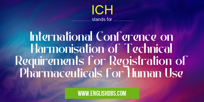 ICH mostly used in an acronym Professional Organizations in Category Business that means International Conference on Harmonisation of Technical Requirements for Registration of Pharmaceuticals for Human Use