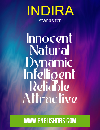 INDIRA mostly used in an acronym Ecology in Category Academic & Science that means Innocent Natural Dynamic Intelligent Reliable Attractive