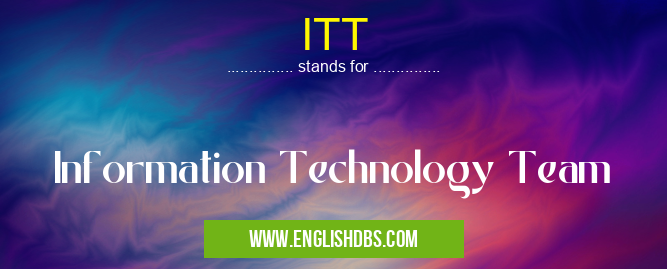 What does it stands for / ITT definition / ITT means?The definition of ITT is given above. Check out related information for more details. What does abbreviation mean ITT?The abbreviation for ITT is given above, so check out related information. What is the meaning of ITT?The meaning of the ITT is also explained earlier. So far, you might have gotten some idea about the acronym, abbreviation, or meaning of ITT. What does ITT mean? is explained earlier. You might also like some similar terms related to ITT to know more about it. This site contains various terms related to Research, Geography, IEEE, British Degree, Meteorology, Optics, Colleges, Societies, Hydrology, Academic Degrees, Trade Associations, Finance, Auditing, Agencies, Career, Institutes, Environmental, Governmental, Fire Departments, Commerce, Geriatric, Nursing, Veterinary, Disability, Cancer, Surgical, Transplantation, Prevention, Hospitals, Prescription and other terms. What is ITT?The acronym ACF could stand for more than one thing. To find out what it means, look up all of its possible meanings one by one. - What does ITT stands for in category GOVERNMENTAL