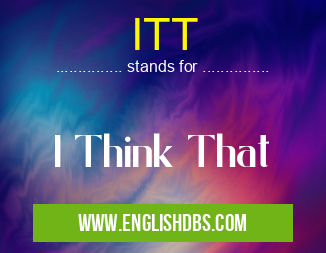 ITT mostly used in an acronym Unclassified in Category Miscellaneous that means I Think That