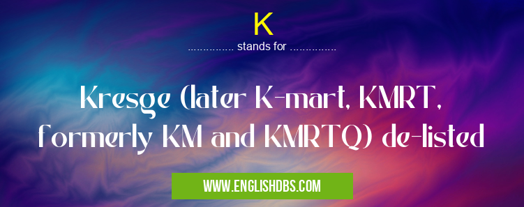 Full Form: Kresge (later K-mart, KMRT, formerly KM and KMRTQ) de-listed