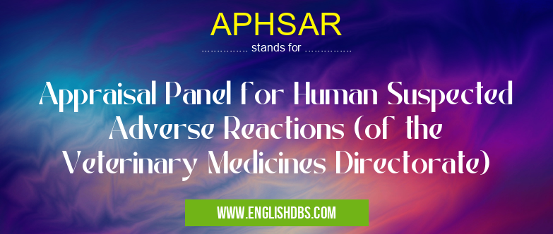 APHSAR mostly used in an acronym Veterinary in Category Medical that means Appraisal Panel for Human Suspected Adverse Reactions (of the Veterinary Medicines Directorate)