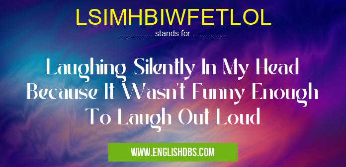 LSIMHBIWFETLOL mostly used in an acronym Chat in Category Internet that means Laughing Silently In My Head Because It Wasn't Funny Enough To Laugh Out Loud