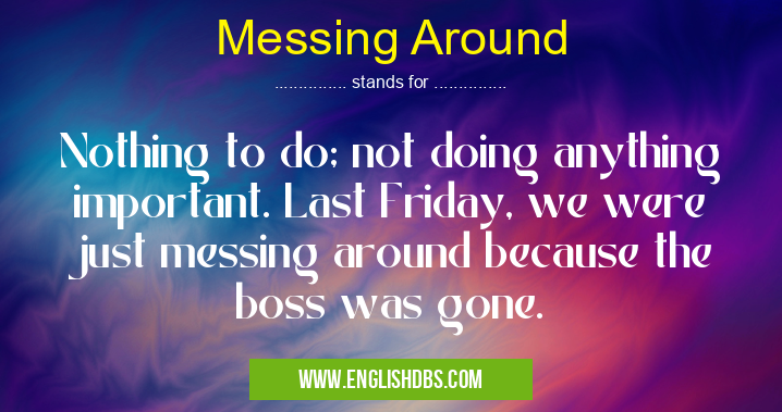 Full Form: Nothing to do; not doing anything important. Last Friday, we were just messing around because the boss was gone.