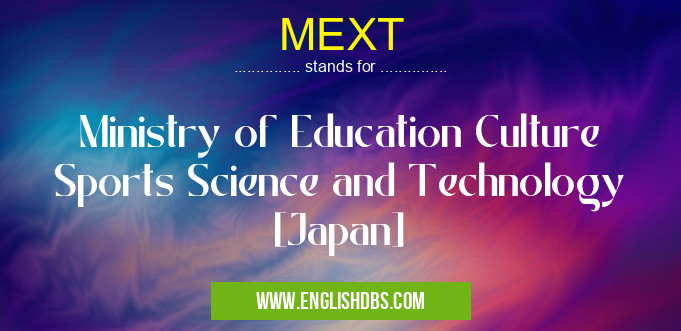 MEXT mostly used in an acronym Governmental in Category Governmental that means Ministry of Education Culture Sports Science and Technology [Japan]