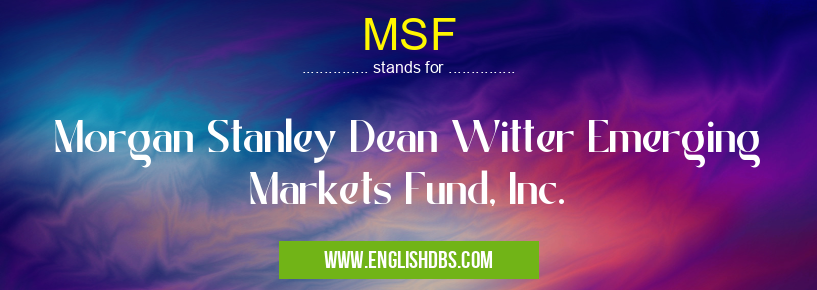 MSF mostly used in an acronym NYSE Symbols in Category Business that means Morgan Stanley Dean Witter Emerging Markets Fund, Inc.