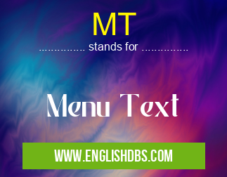 MT mostly used in an acronym General in Category Computing that means Menu Text